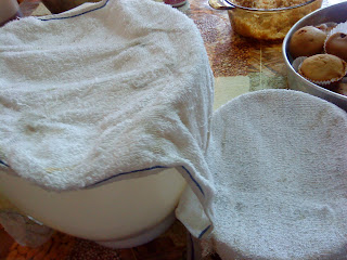 tutup bowl dengan towel dan biarkan selama 30 minit atau sehingga adunan kembang/naik jadik double..